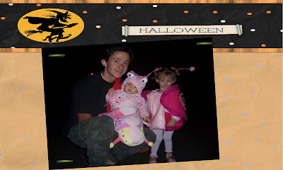 it was mommy's turn to sit around the fire and pass out candy, so daddy took Anna trick or treating, she wanted Maddie to come too. here she is holding her hand to walk off into the night.
